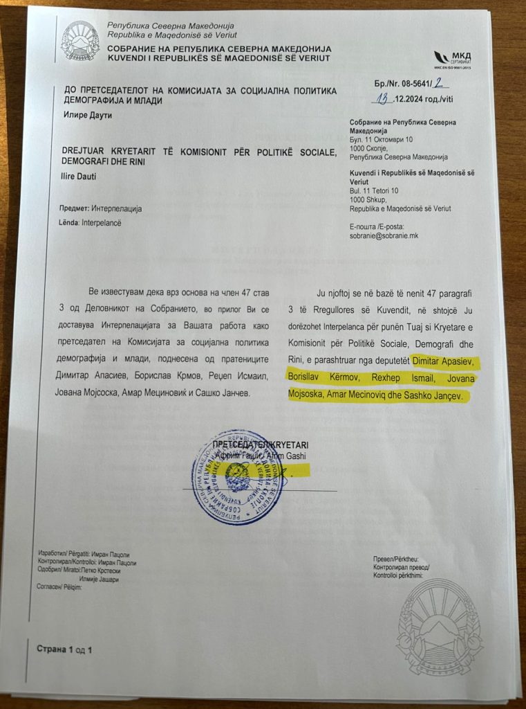 Koalicioni jolegjitim VLEN dhe Kryetari i Kuvendit, Afrim Gashi, janë bërë bashkë me Levicën kundër Kryetares së Komisionit për Politilë Sociale, Demografi dhe të rinjë, Ilire Dauti, për të debllokuar ligjin për “branitella”. Kryeparlamentari Gashi ka procesuar interpelancën e ngritur nga deputetët e Levicës ndaj Ilire Dautit, që nënkupton se me shkarkimin e saj do të zgjidhet një kryetar tjetër, i cili mund të mos jetë nga radhët tona dhe më pas ta vendoste në rend dite ligjin për “branitella” për ta procesuar të njëjtin më tej deri në votimin përfundimtar. VMRO, LSDM dhe Levica kanë votat e mjaftueshme dhe nuk ka më asnjë mekanizëm tjetër për ta bllokuar.