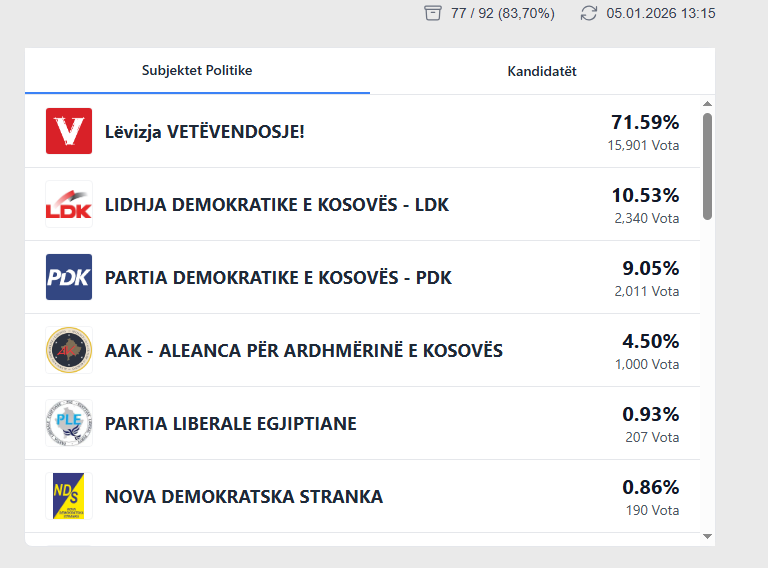 Janë procesuar 77 nga 92 vendvotimet nga votimi me postë.